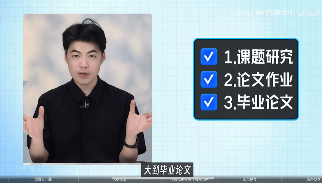 垂直領(lǐng)域的深度對話,是視頻播客的另一大優(yōu)勢。通過“垂直破圈”機(jī)制,行業(yè)新人得以直接對話領(lǐng)域大咖,形成高質(zhì)量交流生態(tài)。科技UP主「圖靈的貓」開設(shè)“百大AI應(yīng)用視頻播客”專欄,與納米AI創(chuàng)始人周鴻祎、智譜CEO張鵬等行業(yè)領(lǐng)袖暢聊AI發(fā)展;「genji是真想教會你」則通過視頻播客完成內(nèi)容轉(zhuǎn)型,打通“帶課”商業(yè)模式。這種專業(yè)層面的“交鋒”,不僅為創(chuàng)作者帶來行業(yè)認(rèn)可,更通過視聽化拆解,讓晦澀專業(yè)內(nèi)容變得通俗易懂。