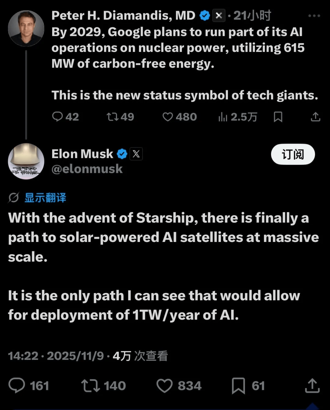 馬斯克近日在社交平臺X上透露,隨著星艦技術(shù)的突破,大規(guī)模部署太陽能驅(qū)動的人工智能衛(wèi)星將成為現(xiàn)實。他強調(diào),這是目前唯一能夠?qū)崿F(xiàn)每年部署1太瓦(1TW)人工智能算力的可行路徑。這一表態(tài)被視為對谷歌計劃使用核能支持AI運營的直接回應(yīng)。此前,馬斯克曾宣布SpaceX將推進太空數(shù)據(jù)中心建設(shè),通過升級Starlink V3衛(wèi)星并配備高速激光鏈路來實現(xiàn)這一目標。