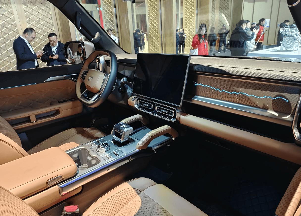 智能座艙迎來質的飛躍。全系標配15.6英寸懸浮中控屏與全液晶儀表盤,燃油版搭載高通8155芯片,插混版升級至8255芯片,配合TOUR OS 3.0系統(tǒng),實現(xiàn)四音區(qū)語音交互功能。深度融合的DeepSeek架構與訊飛星火AI大模型,使車機系統(tǒng)具備更強的語義理解能力,從導航設置到娛樂控制均可通過自然對話完成。