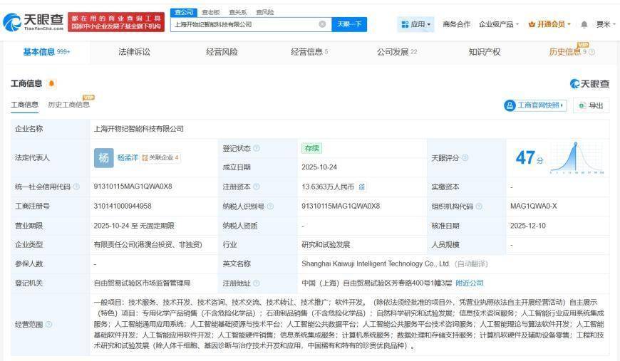 這家成立于今年10月的新銳企業,由法定代表人楊孟洋領銜運營,核心業務聚焦人工智能與材料科學的交叉領域。企業工商登記信息顯示,其經營范圍涵蓋人工智能行業應用系統集成、通用應用系統開發及基礎資源技術平臺建設。目前股權結構呈現多元化特征,除新晉股東外,還包括自然人陸子恒與北京衍升科技中心(有限合伙)等主體。
