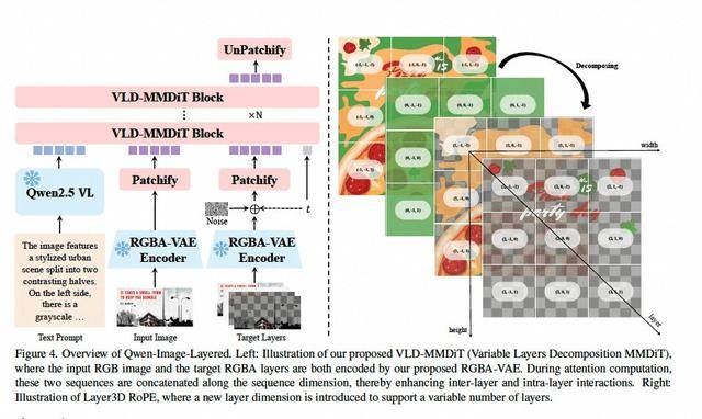 Qwen-Image-Layered通過引入分層處理機制,構建起對三維空間的立體認知。研發團隊開發的RGBA-VAE編碼技術,在傳統RGB色彩模式基礎上新增透明度通道(Alpha),使模型具備圖層分離能力。配合創新的VLD-MMDiT架構與3D位置編碼系統,模型能夠自動推斷被遮擋區域的背景紋理,實現從"像素預測"到"結構重組"的技術跨越。這種處理方式更接近人類設計師的思維模式,為圖像編輯提供了前所未有的操作自由度。