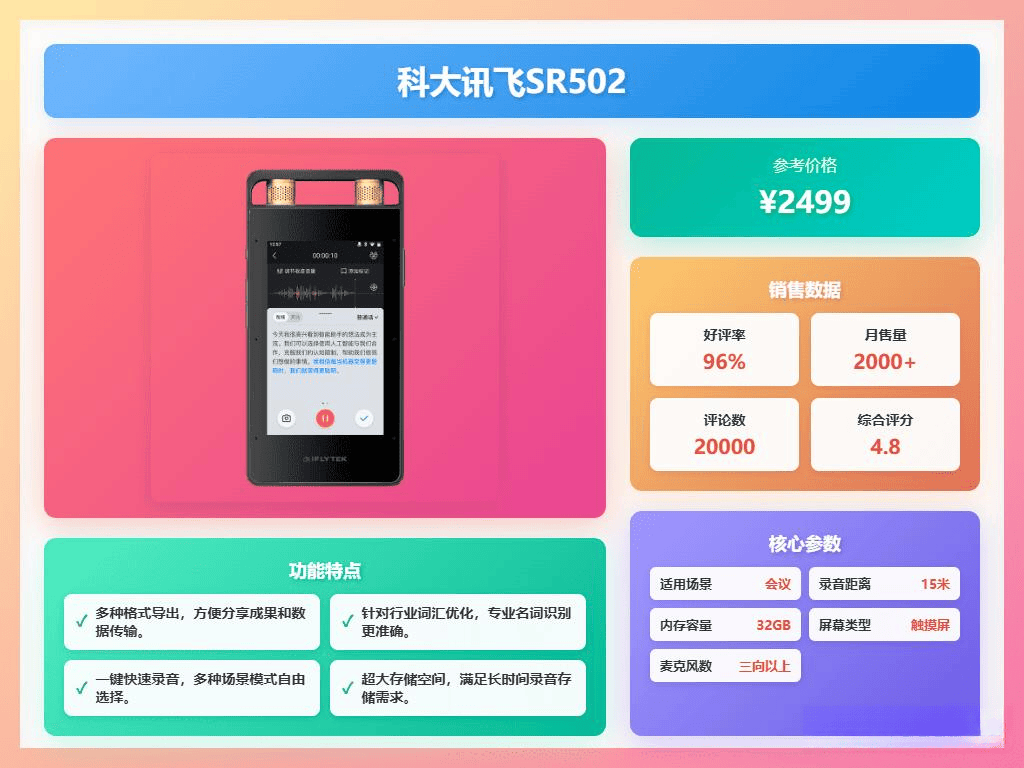 市場反饋顯示,科大訊飛智能錄音筆正在重塑專業(yè)錄音設備標準。其將AI語音技術、硬件設計與用戶需求深度融合的研發(fā)思路,為行業(yè)樹立了新的標桿。隨著遠程辦公與跨語言協(xié)作需求的增長,這類具備高精度錄音與智能轉寫功能的設備,正成為現(xiàn)代職場人士的標配工具。