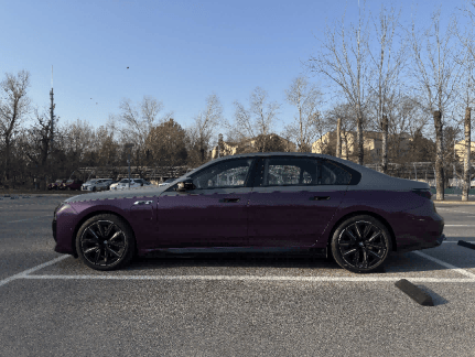 當巖石灰與絲綢紫在車身上交織,這款寶馬M760Le雙拼色版瞬間成為街頭焦點。專屬定制的車漆在日光下泛著金屬漣漪,從前翼子板貫穿至車尾的腰線,將沉穩與靈動完美平衡。標志性的雙腎格柵鑲嵌著環形光耀燈帶,夜間點亮時如星河傾瀉,施華洛世奇水晶切割的日間行車燈在解鎖瞬間綻放流光,配合車尾四出排氣與M760Le專屬徽標,21英寸運動輪轂碾過路面時,連超跑車主都忍不住側目。