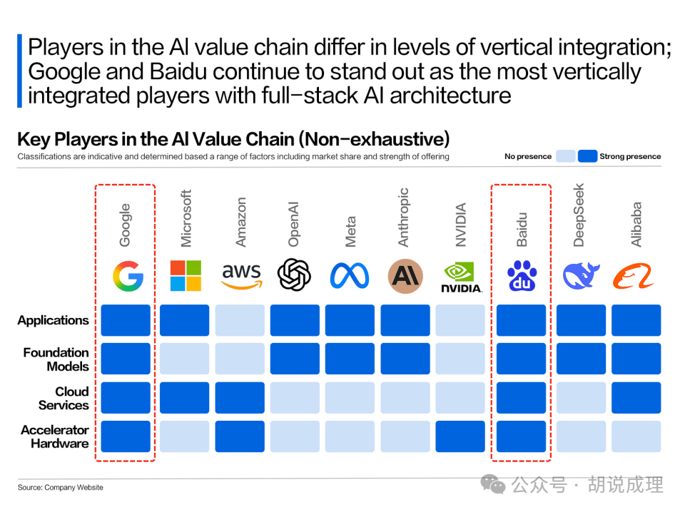 全球科技產業的競爭格局正在發生深刻變化。將時鐘撥回2022年底,谷歌同樣經歷著類似的認知重構過程。當時ChatGPT引發的AI革命中,這位先行者被質疑"掉隊",市值一度跌破1.1萬億美元。但通過Gemini大模型與自研TPU芯片的垂直整合,谷歌在2025年實現市值2.6萬億美元的逆襲。這種技術驅動的價值重估路徑,與百度當前的發展軌跡形成鏡像——兩家公司都擁有搜索基因帶來的數據優勢,都堅持全棧AI布局,都在芯片與自動駕駛領域取得突破性進展。