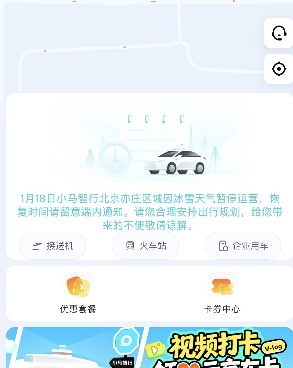 用戶接受度不足的背后,是運營效率與體驗的雙重挑戰。記者實地體驗發現,在非高峰時段從亦莊火車站接駁點下單,需等待超過15分鐘車輛才抵達。客服解釋稱,該區域車輛密度較低,系統需從較遠區域調度車輛,早晚高峰或惡劣天氣下等待時間可能更長。雨雪天氣成為運營的“硬約束”——1月18日北京降雪時,小馬智行APP直接顯示“暫停運營”,于女士也證實,此類天氣下所有無人駕駛服務均會停擺。