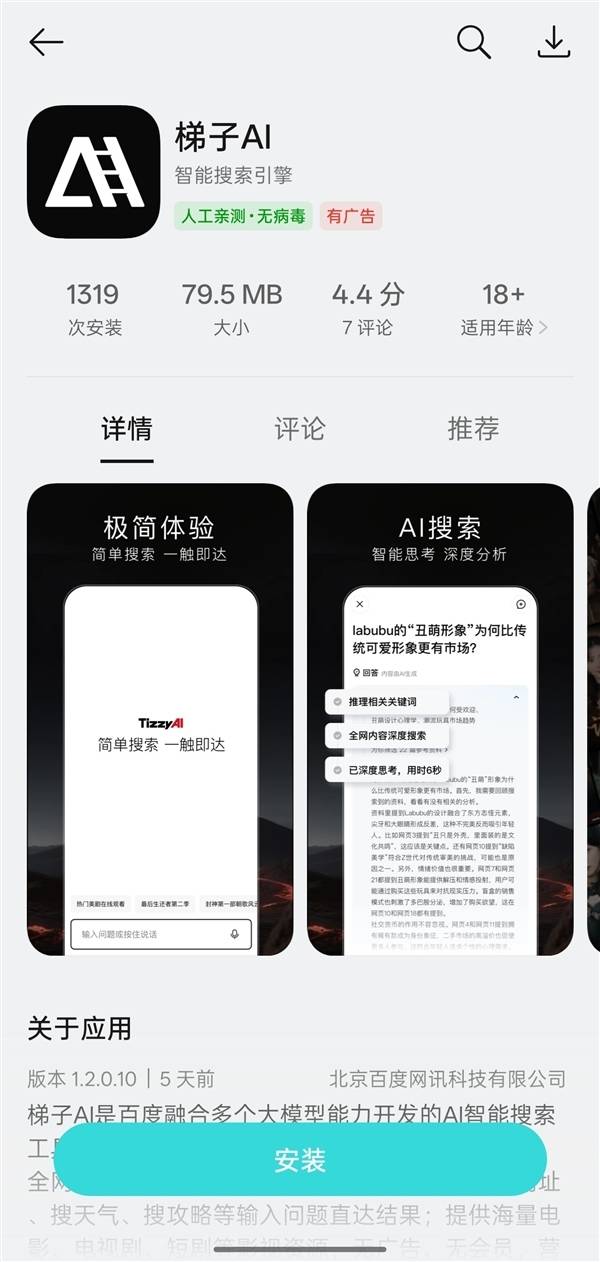作為百度推出的創(chuàng)新型搜索產(chǎn)品,梯子AI以"無廣告智能搜索"為核心賣點,同時整合了深度思考、資源檢索及影視娛樂等多元化功能。上線初期,該應(yīng)用通過"海量資源"的宣傳策略吸引用戶關(guān)注,尤其在影視內(nèi)容領(lǐng)域布局顯著。其宣稱覆蓋全球熱門電影、電視劇及短劇資源,并承諾觀看短劇時無廣告、無需會員且支持加速緩沖,同時提供邊看邊搜的交互體驗。