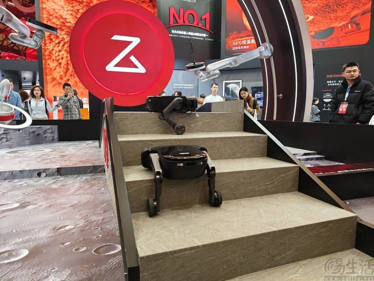 這家企業(yè)展出的核心產(chǎn)品,是今年初在CES展會上發(fā)布的全球首款輪足式掃地機(jī)器人G-Rover。與傳統(tǒng)雙足機(jī)器人不同,其反曲關(guān)節(jié)與輪足結(jié)合的設(shè)計,使設(shè)備在行進(jìn)時幾乎無聲,更能跨越障礙物、攀爬樓梯,甚至在臺階處"蹲下"清潔傳統(tǒng)機(jī)型難以觸及的頂部區(qū)域。這種將科幻構(gòu)想轉(zhuǎn)化為實用功能的創(chuàng)新,讓參觀者直觀感受到技術(shù)落地的價值。