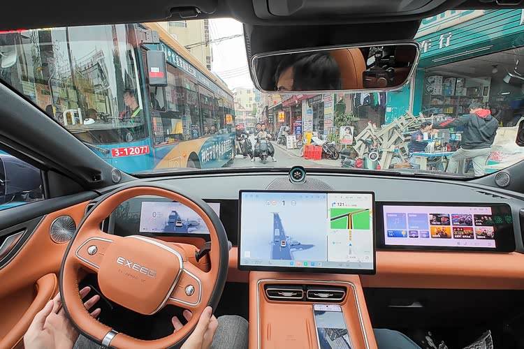 鄉(xiāng)村窄路的考驗(yàn)緊隨其后。試駕路線特意選取了一段寬度僅容兩車交會(huì)的狹窄路段,兩側(cè)緊鄰綠植與路肩,稍有不慎便可能剮蹭。星途ET5的27顆高精傳感器與560TOPS算力的地平線征程?6P芯片此時(shí)派上用場(chǎng)——系統(tǒng)實(shí)時(shí)標(biāo)注車身與路肩、對(duì)向來(lái)車的距離,通過(guò)全維感知構(gòu)建“上帝視角”,精準(zhǔn)引導(dǎo)車輛通過(guò)。即便駛?cè)雭鲱^隧道等信號(hào)屏蔽路段,系統(tǒng)仍能穩(wěn)定跟車、勻速行駛,徹底告別“隧道恐懼癥”。