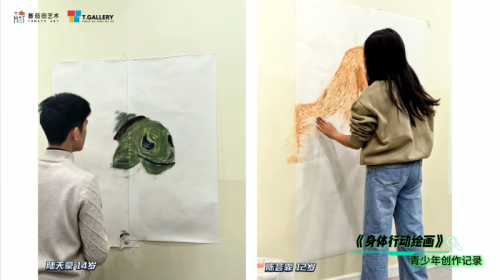 觀時見空展區(qū),是“觀”的最高階。打破藝術(shù)的邊界,觀察時間和空間的藝術(shù)表達(dá),在觀察中學(xué)會創(chuàng)新,在創(chuàng)作中懂得融合。重點(diǎn)作品《身體藝術(shù)》中,孩子們拋開畫筆,用指尖、手掌蘸取顏料,按壓、涂抹、拍打……讓身體的溫度變成看得見的語言。“畫的時候特別自由、特別開心,因為那是我們自己在畫畫。”一位小作者這樣分享。
