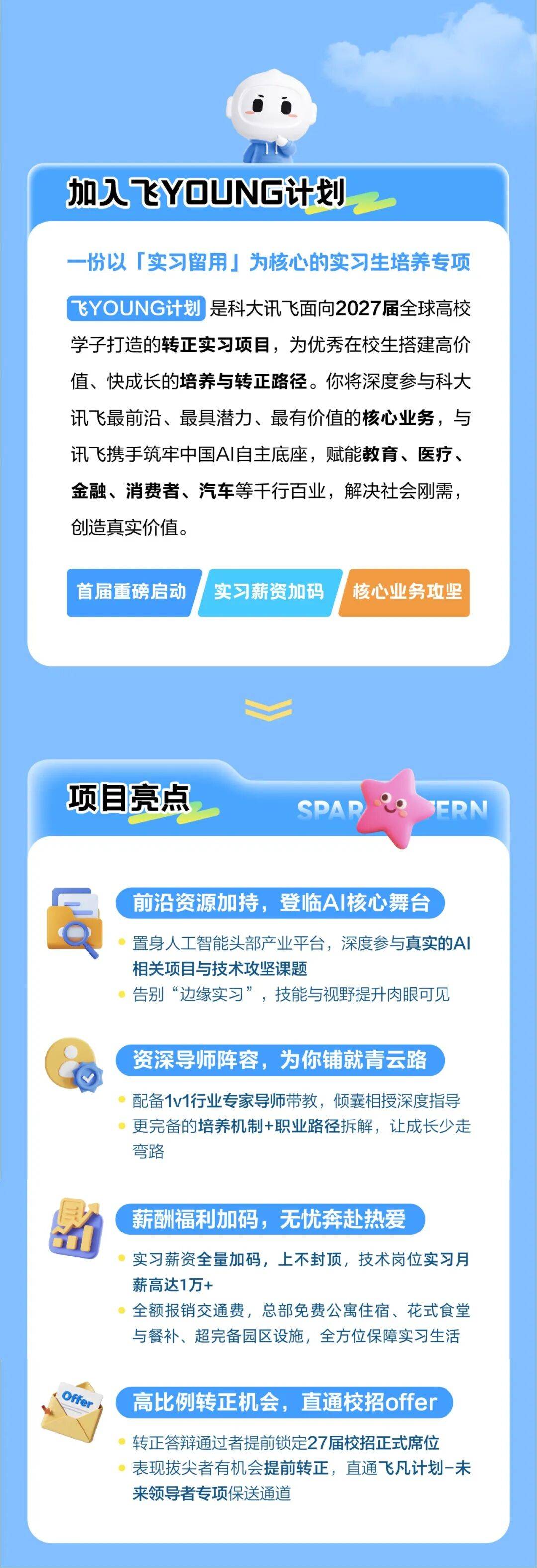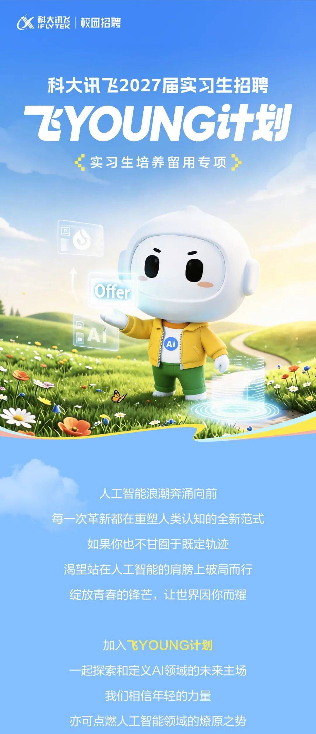 科大訊飛2027屆「飛YOUNG」實習生計劃開啟,培養(yǎng)留用雙通道等你來