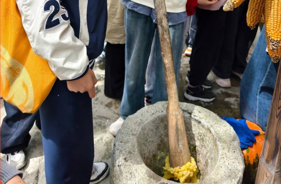 在羌寨民居的灶臺旁,孩子們圍坐一圈,跟著村民韓英嬢嬢學習制作洋芋糍粑。木槌捶打糯米的咚咚聲與歡聲笑語交織,構(gòu)成一幅生動的文化傳承畫面?!按蠹液狭Υ反螋亵?,象征著團圓和睦,就像我們羌族人鄰里互助的傳統(tǒng)。”韓英嬢嬢一邊示范一邊解釋,軟糯香甜的糍粑寓意著日子越過越滋潤。孩子們品嘗著自己親手制作的美食,臉上洋溢著滿足的笑容。