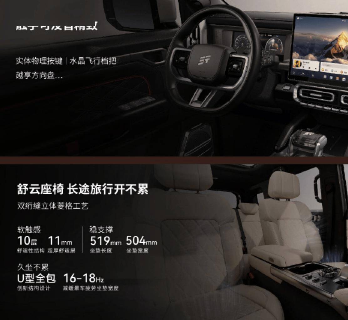 外觀方面,兩款車型延續(xù)了標(biāo)志性的“方盒子”造型,前臉采用JETOUR立體格柵搭配縱橫矩陣式LED大燈組,車身側(cè)面配備傳統(tǒng)造型門(mén)把手,車頂搭載64英寸全景天窗,車尾則采用直瀑貫穿式尾燈與魔術(shù)電吸尾門(mén)設(shè)計(jì),并保留了越野車型標(biāo)志性的外掛式備胎。燃油版與混動(dòng)版在外觀上保持高度一致,僅通過(guò)細(xì)節(jié)標(biāo)識(shí)區(qū)分動(dòng)力版本。