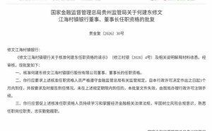 監管正式批復!何建東獲核準擔任修文江海村鎮銀行董事及董事長職務
