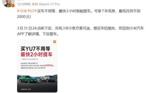 產能大躍升!雷軍官宣小米YU7提車時間驟減,最快2小時開走新車