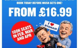 瑞安航空反擊馬斯克,推“大傻瓜”特價票:10萬座位16.99歐元起