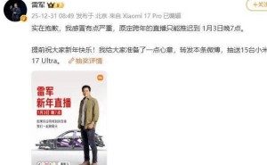 雷軍因感冒致歉米粉!原定跨年拆YU7直播改期至1月3日