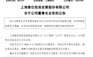 上海雅仕董事長劉忠義離世 副董事長孫望平代行職責 經營業務正常開展